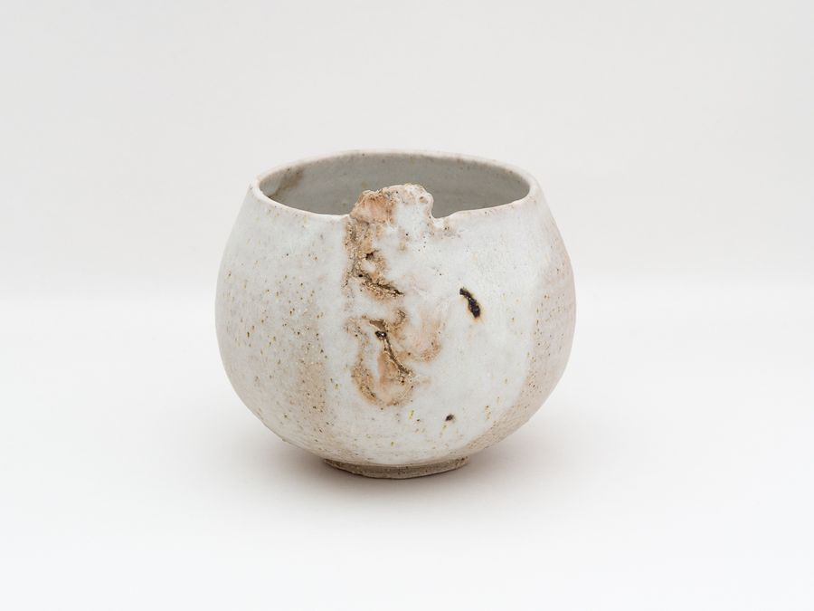 Wheel thrown and altered. This teabowl is glazed with a dolomite glaze and oxides.