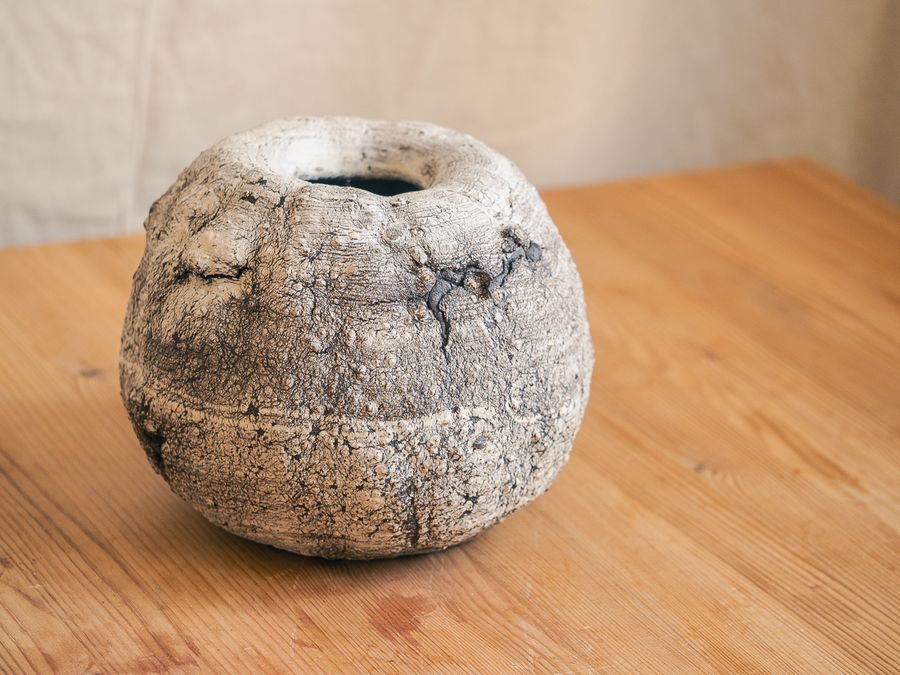 Made with a process involving throwing and hand building that pushes the clay to it's limit. This is a one off piece.